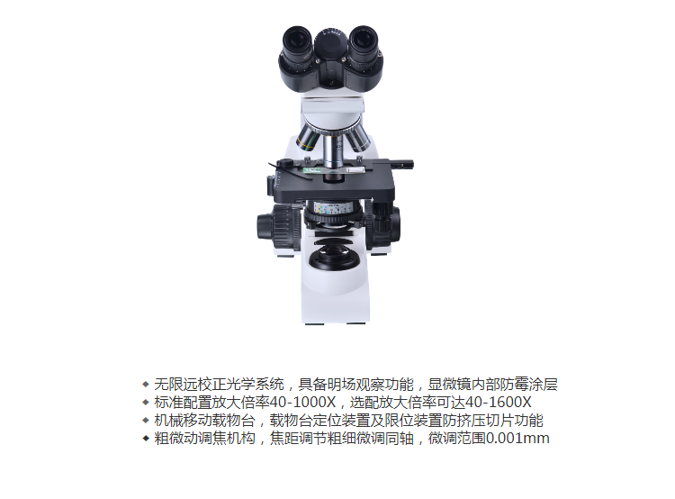 | 观察筒 | 双目观察筒,30°倾斜,360°旋转,瞳距52-75mm,±5视度调节 | ○ |